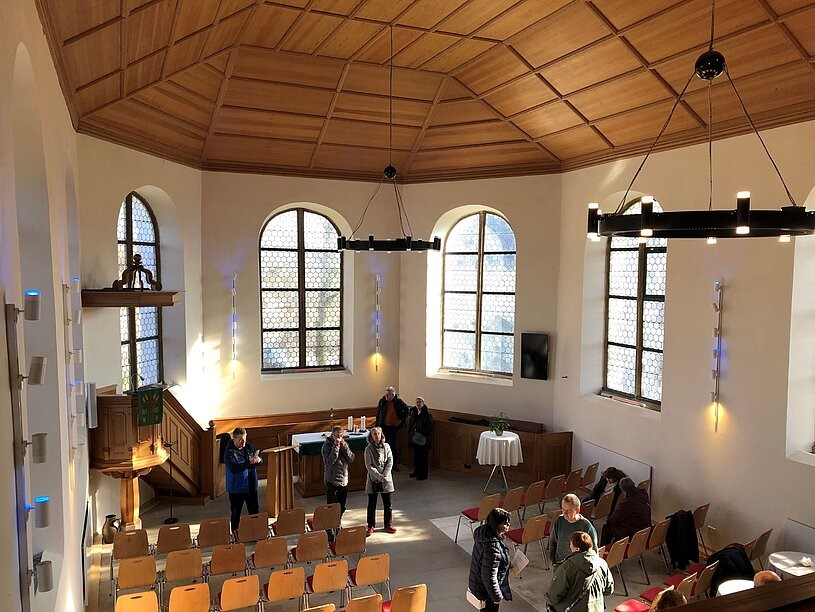 Die Gemeinde Dörrmoschel hat im Mai 2024 den Abschluss der Kirchensanierung gefeiert. Bei einer Exkursion im Februar 2025 waren die Teilnehmenden vom Nutzungs- und Heizkonzept begeistert.
